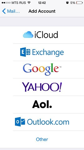 In the displayed list of email providers, select Other. Then tap Add Mail Account.