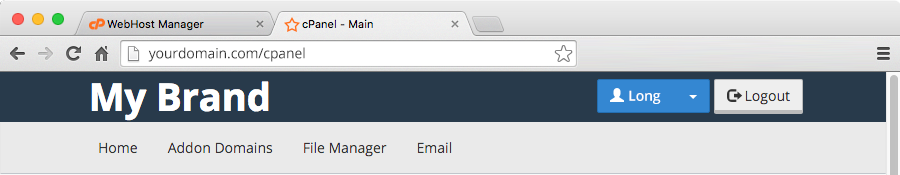 When you’re finished, switch and log into the cPanel dashboard [ex, http://yourdomain.com/cpanel] and you’ll notice your logo and favicon have been updated.