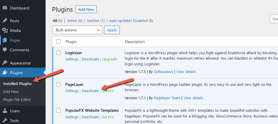 In your WordPress backend, navigate to Plugins → Installed Plugins.